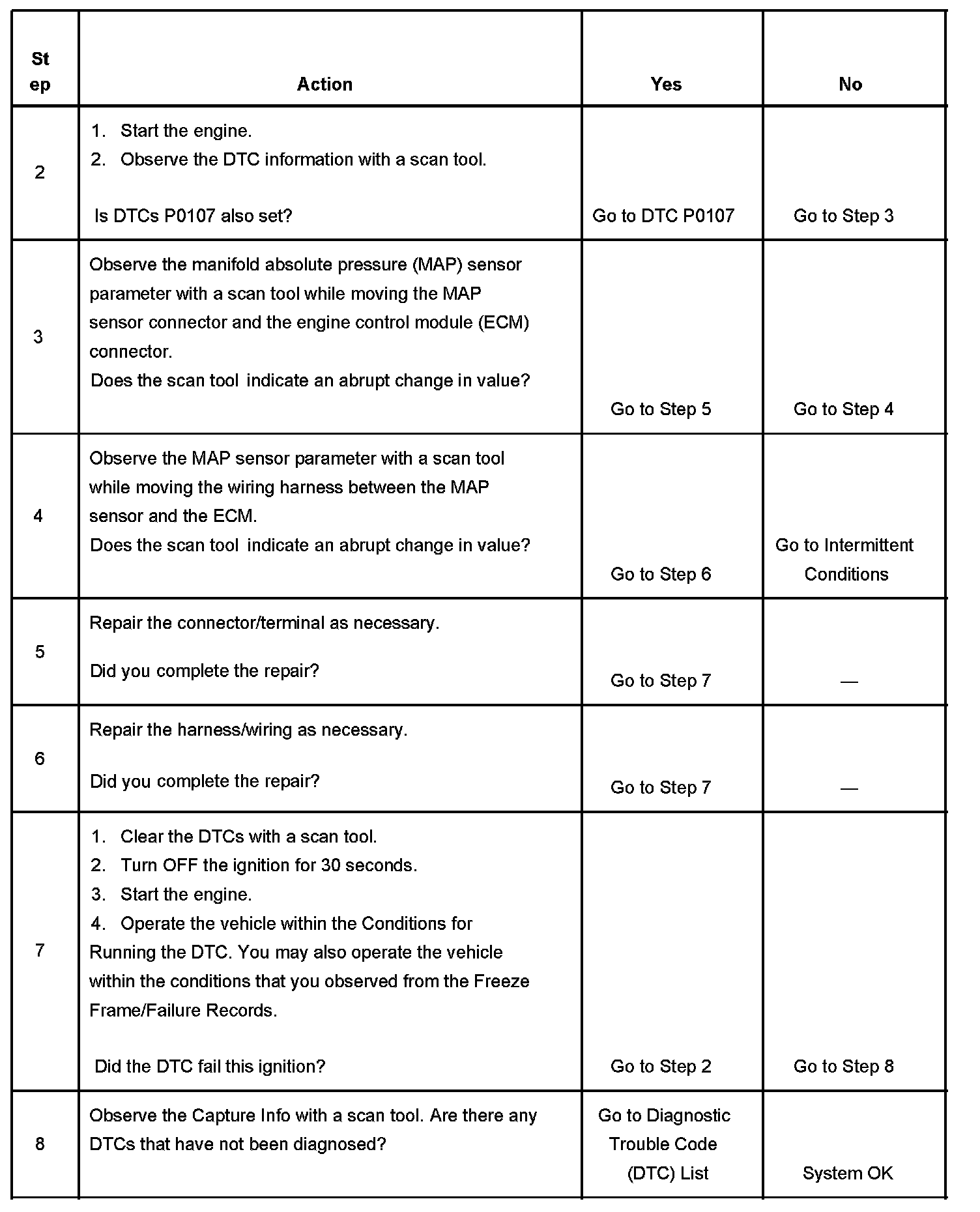 DTC P1107 Manifold Absolute Pressure (MAP) Sensor Circuit Intermittent Low Voltage