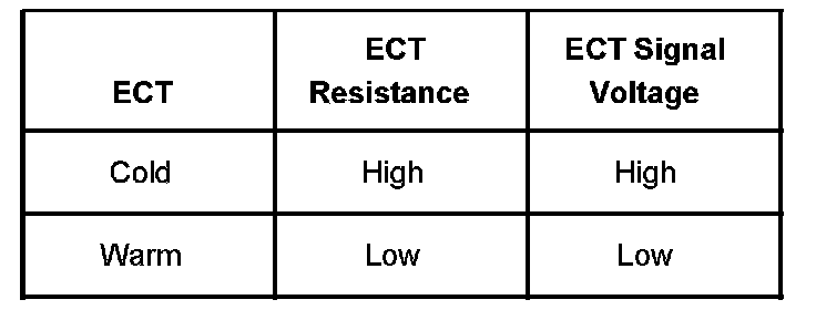 - Test the ECT sensor at various temperature levels in order to evaluate the possibility of a skewed sensor. A skewed sensor can result in a driveability condition.