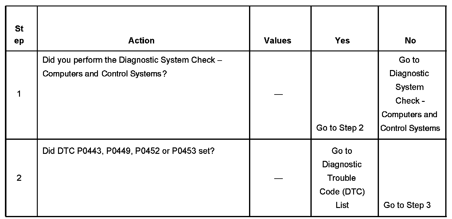 - DTCs P0106, P0107, P0108, P112, P0113, P0117, P0118, P0122, P0123, P0131, P0132, P0133, P0134, P0137, P0138, P0140, P0141, P0201, P0202, P0203, P0204 P0402, P0404, P0405, P0406, P0443, P0452, P0453, P0462, P0463, P0488, P0502, P2195, and P2196 are not set.