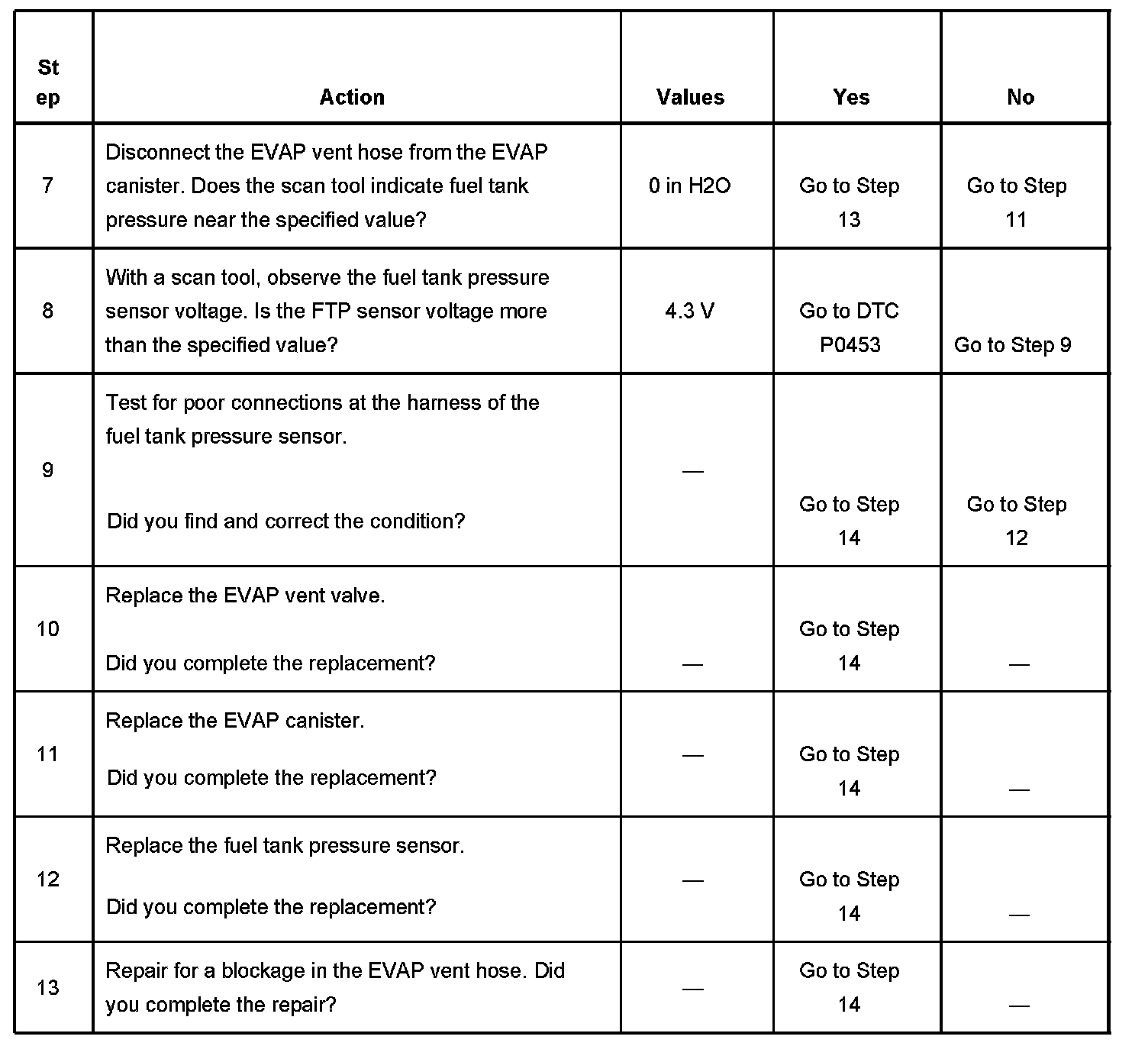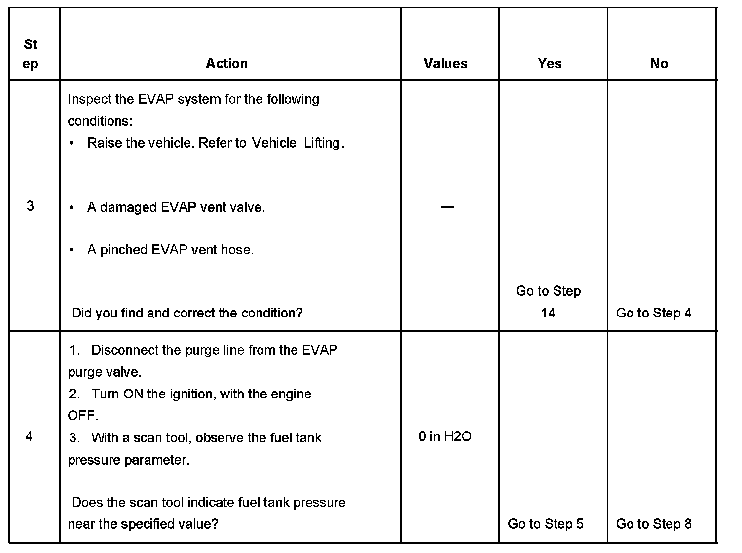 - Fuel tank pressure is more than 9.3 mm Hg (5 inch H2O) or less than -4.7 mm Hg (-2.5 inch H2O) at cold engine startup.