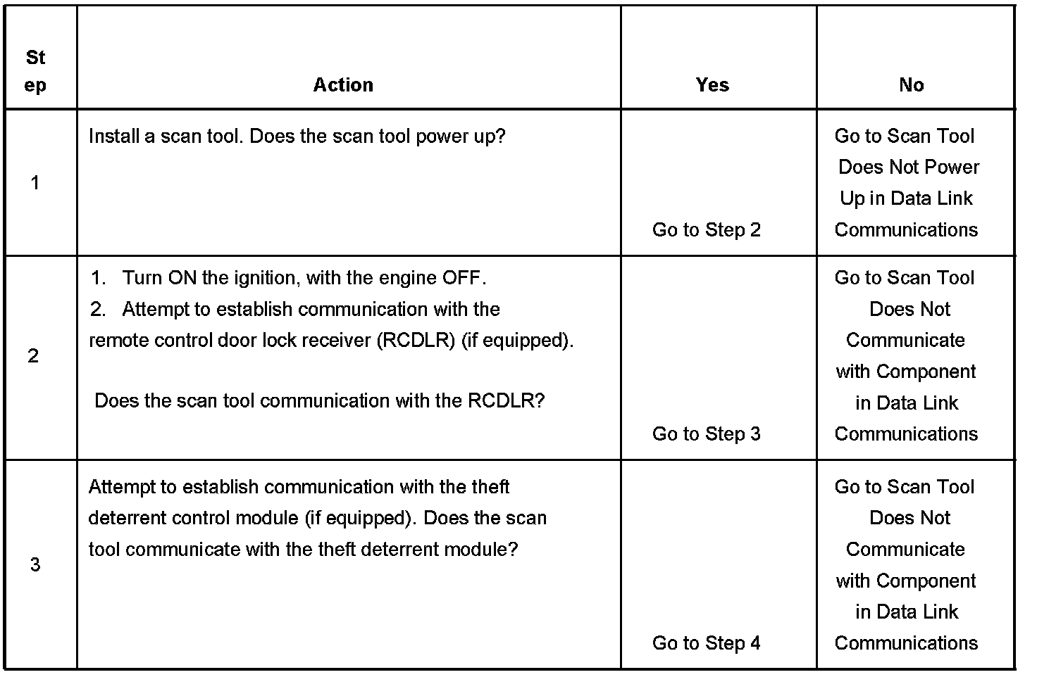 2. Lack of communication may be due to a partial malfunction of the serial data circuit or due to a total malfunction of the serial data circuit. The specified procedure will determine the particular condition.