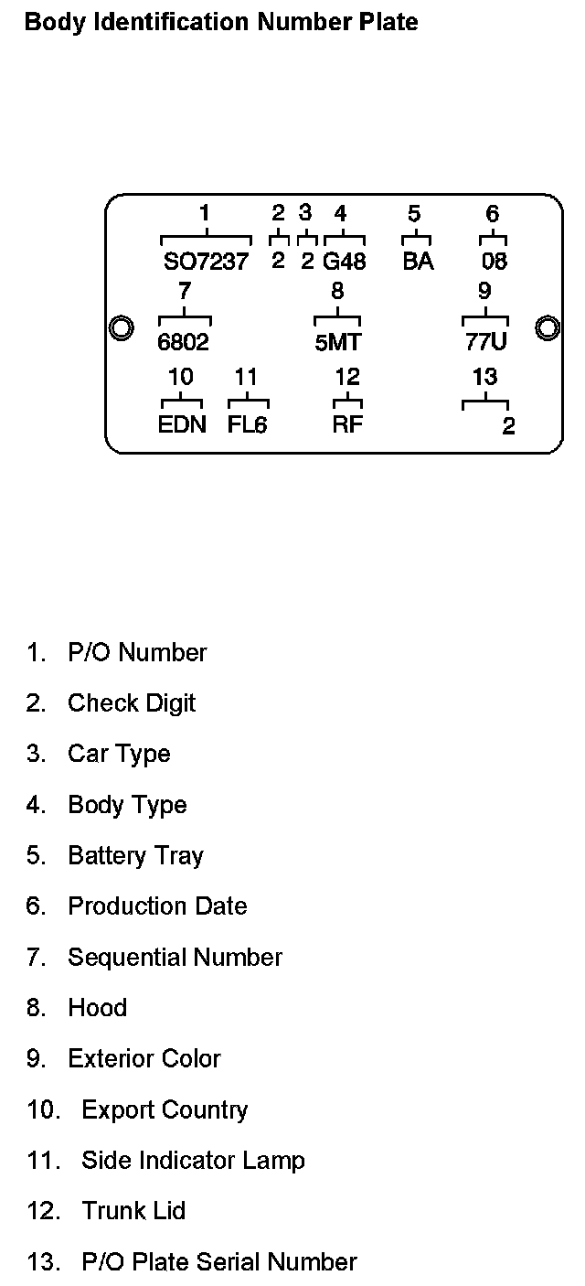 Body Identification Number Plate: