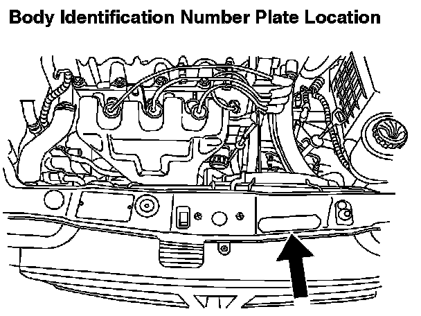 The body identification number plate is attached to the top of the front panel support.