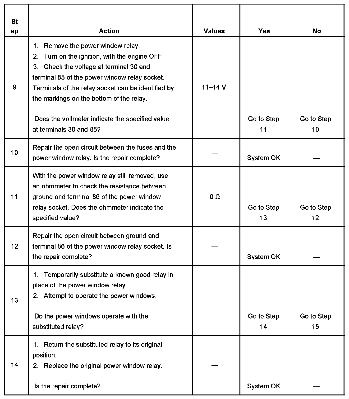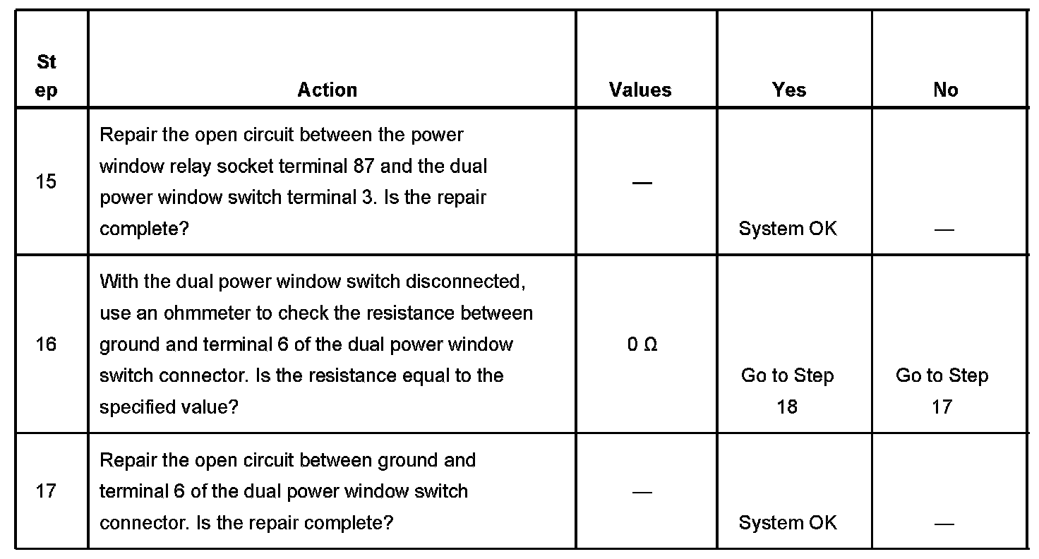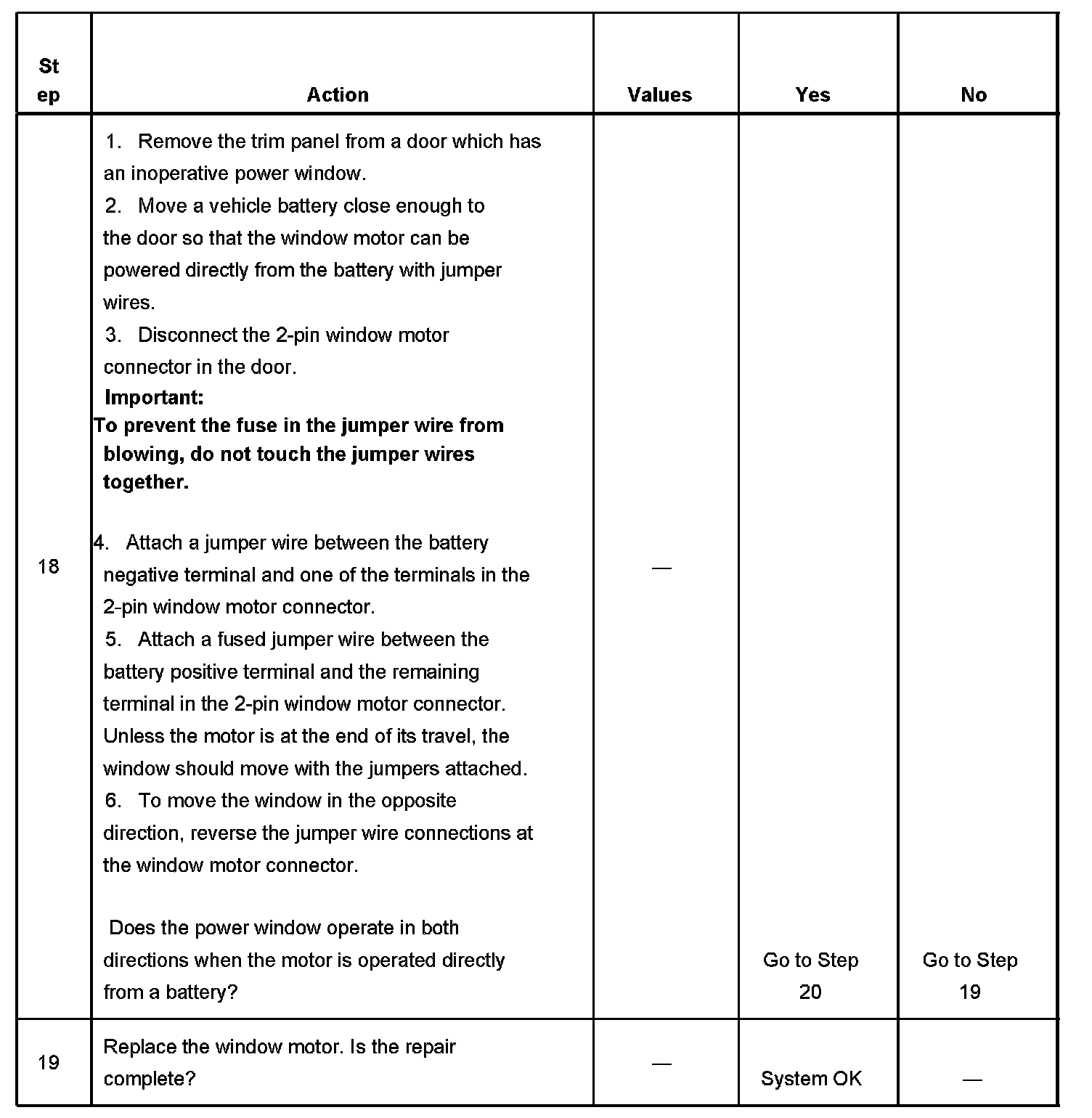 IMPORTANT: These tables are for vehicles equipped with front power windows only.