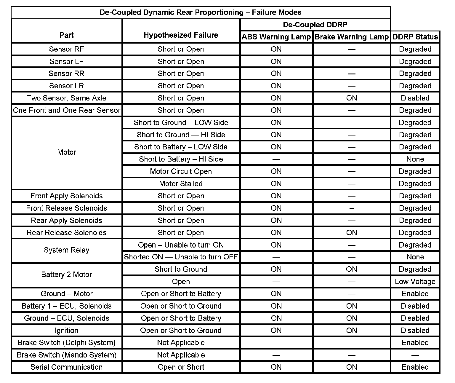 De-Coupled Dynamic Rear Proportioning - Failure Modes