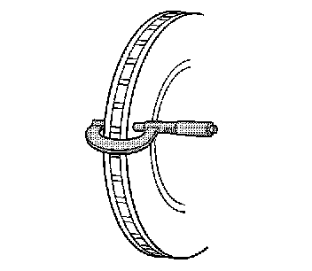 8. Use a micrometer in order to measure the thickness of the brake rotor. Measure the thickness of the rotor at 4 or more points equally spaced around the rotor. Position the micrometer the same distance from the outside edge of the rotor, in the brake pad lining contact area.