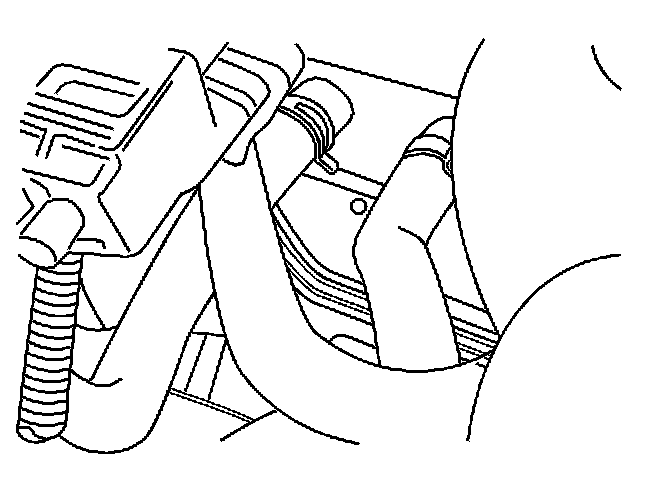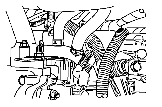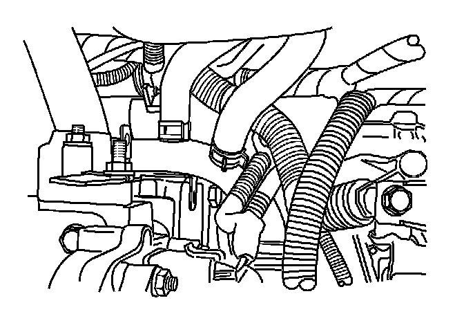 2. Install the right heater hose to the fitting below the intake manifold. Slide the end of the heater hose over the fitting until it is seated.