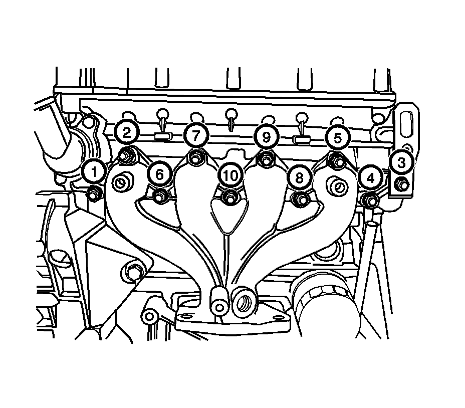 5. Remove the exhaust manifold retaining nuts in the sequence shown and remove the exhaust manifold.