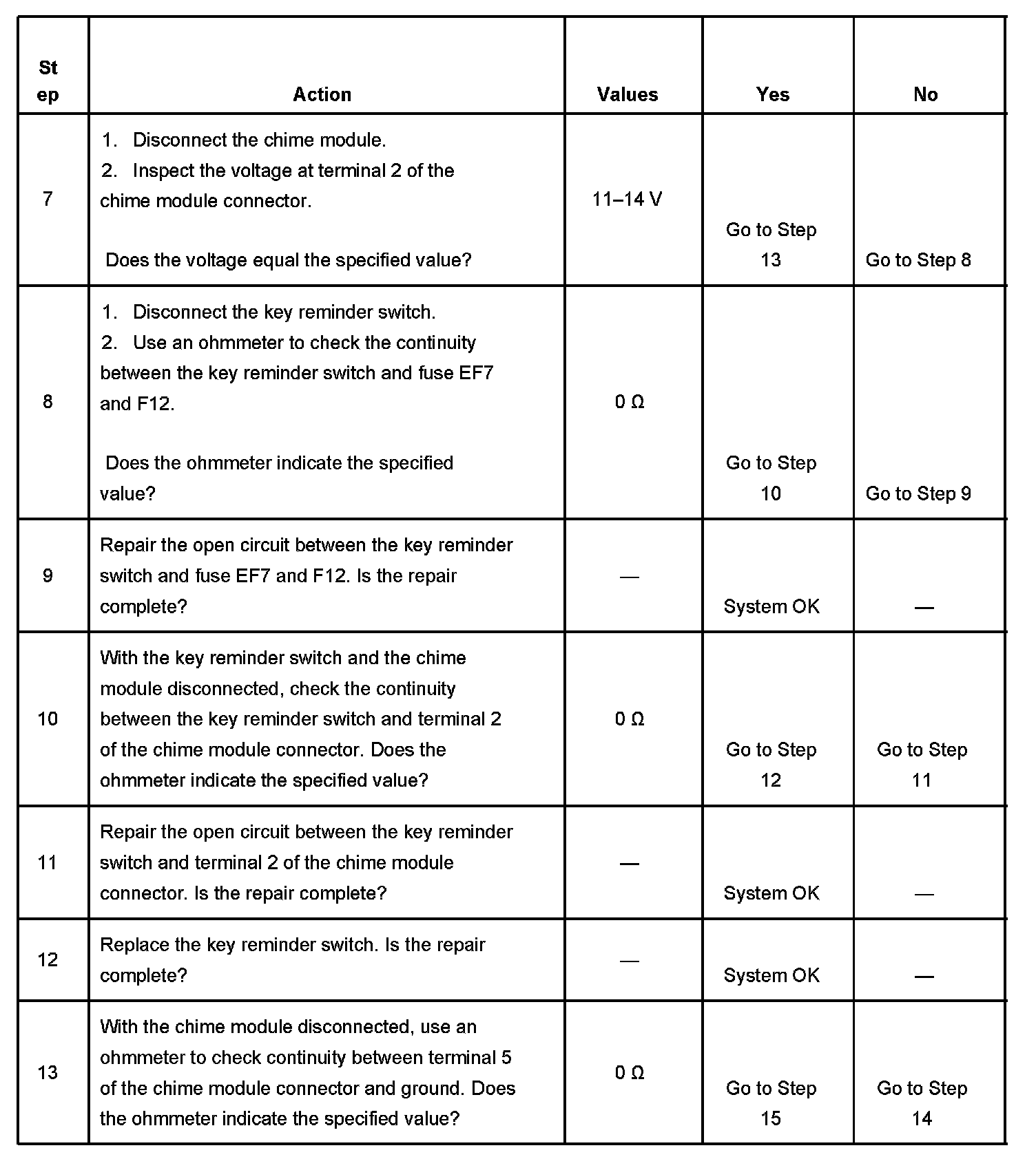 Key Reminder Chime Inoperative