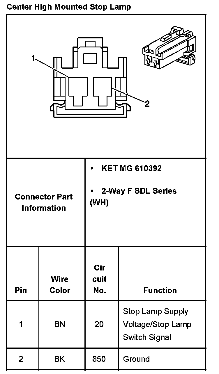 Center Mounted Brake Lamp: Diagrams