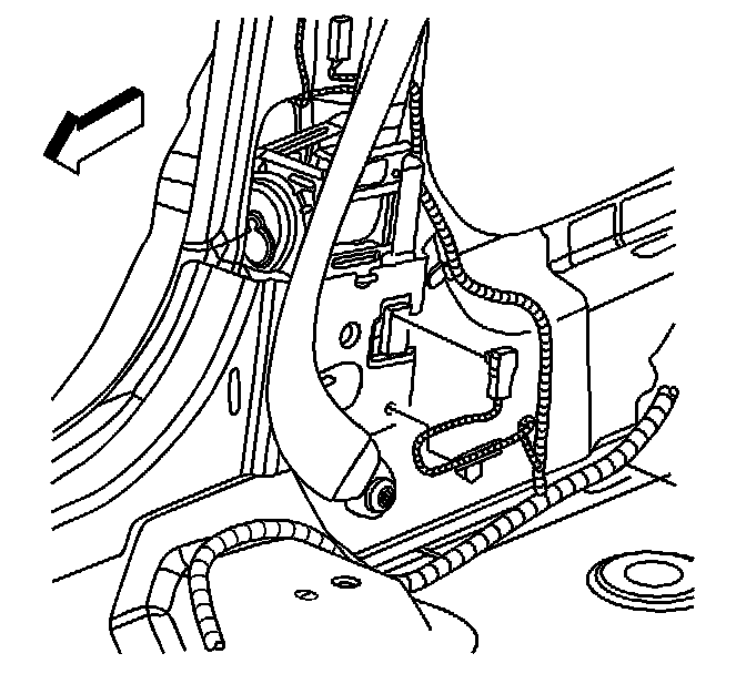 7. Remove the connector position assurance (CPA) from the seat belt pretensioner-LF connector.