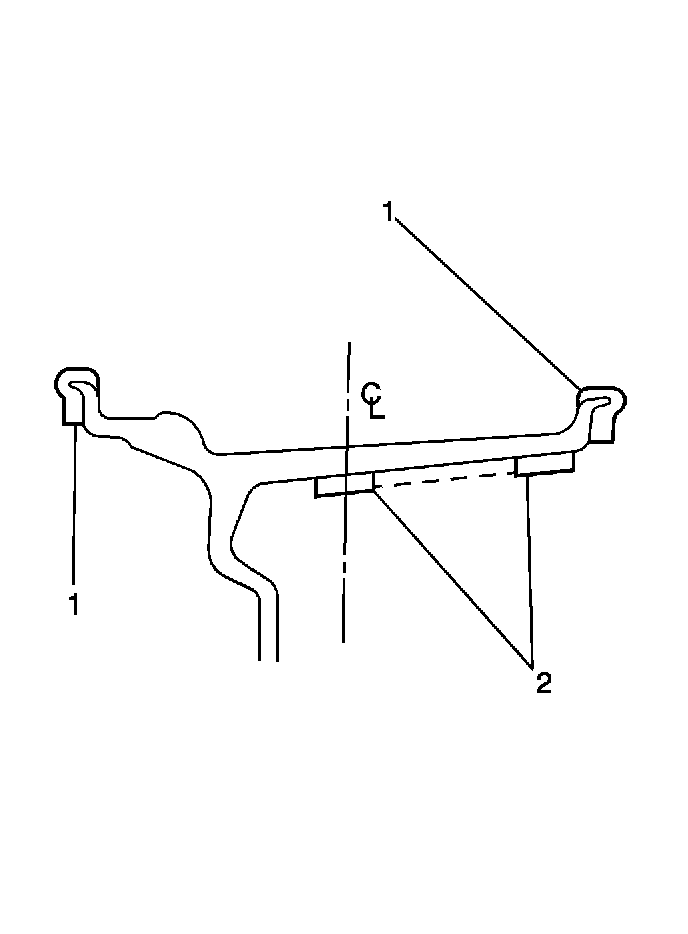 Balancing the assemblies with factory aluminum wheels requires the use of special nylon-coated, clip-on wheel weights (1). These weights are designed to fit over the thicker rim flange of the aluminum wheel. Install these weights with a plastic-tipped hammer.