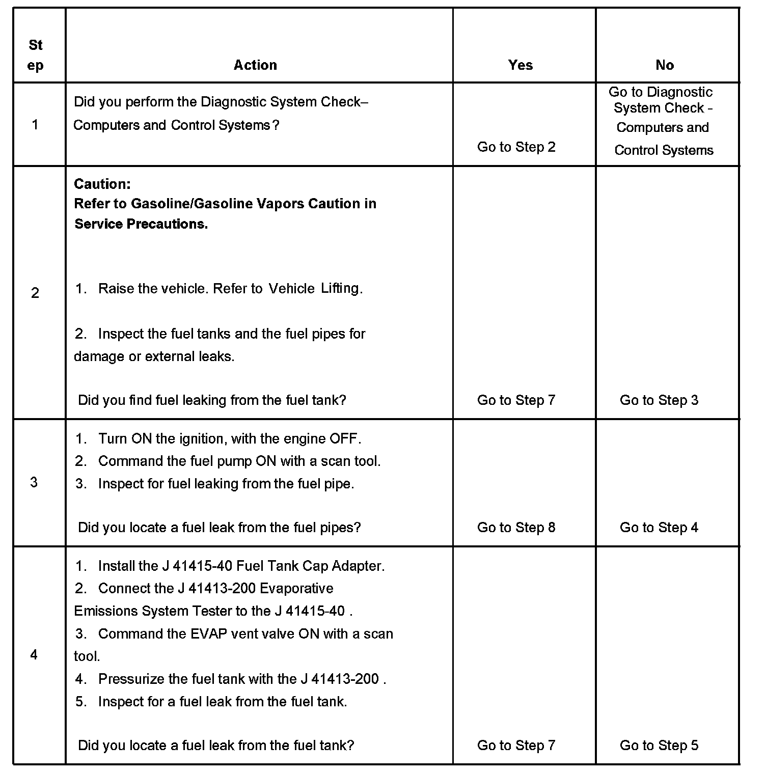 4. This step tests for fuel leaks below the fuel level in the fuel tank.