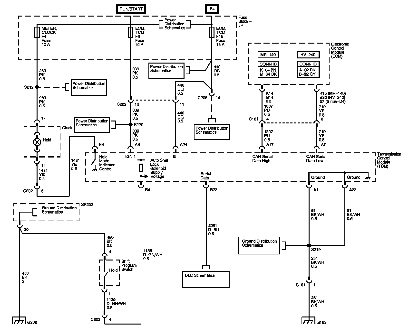 Automatic Transmission Controls SchematicsModule Power, Ground, Malfunction Indicator Lamp (MIL), Hold Lamp and Serial Data