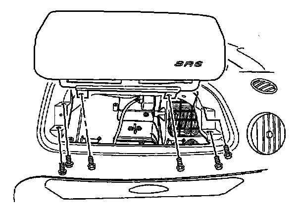 4. Remove the passenger air bag module by removing the mounting bolts from the air bag bracket.