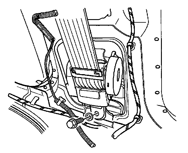 1. Install the seat belt retractor with the bolt.