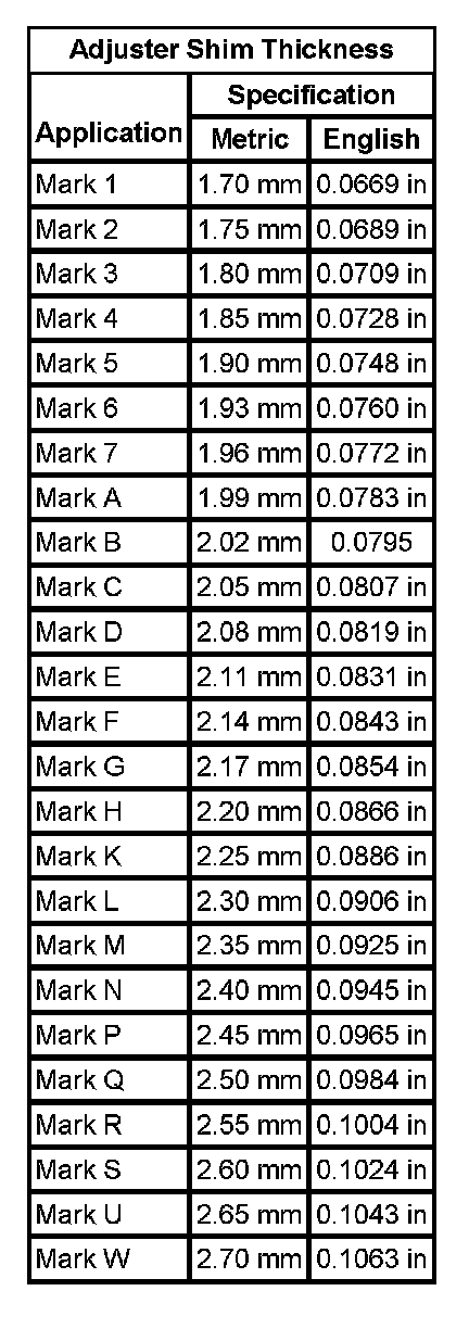 Adjuster Shim Thickness
