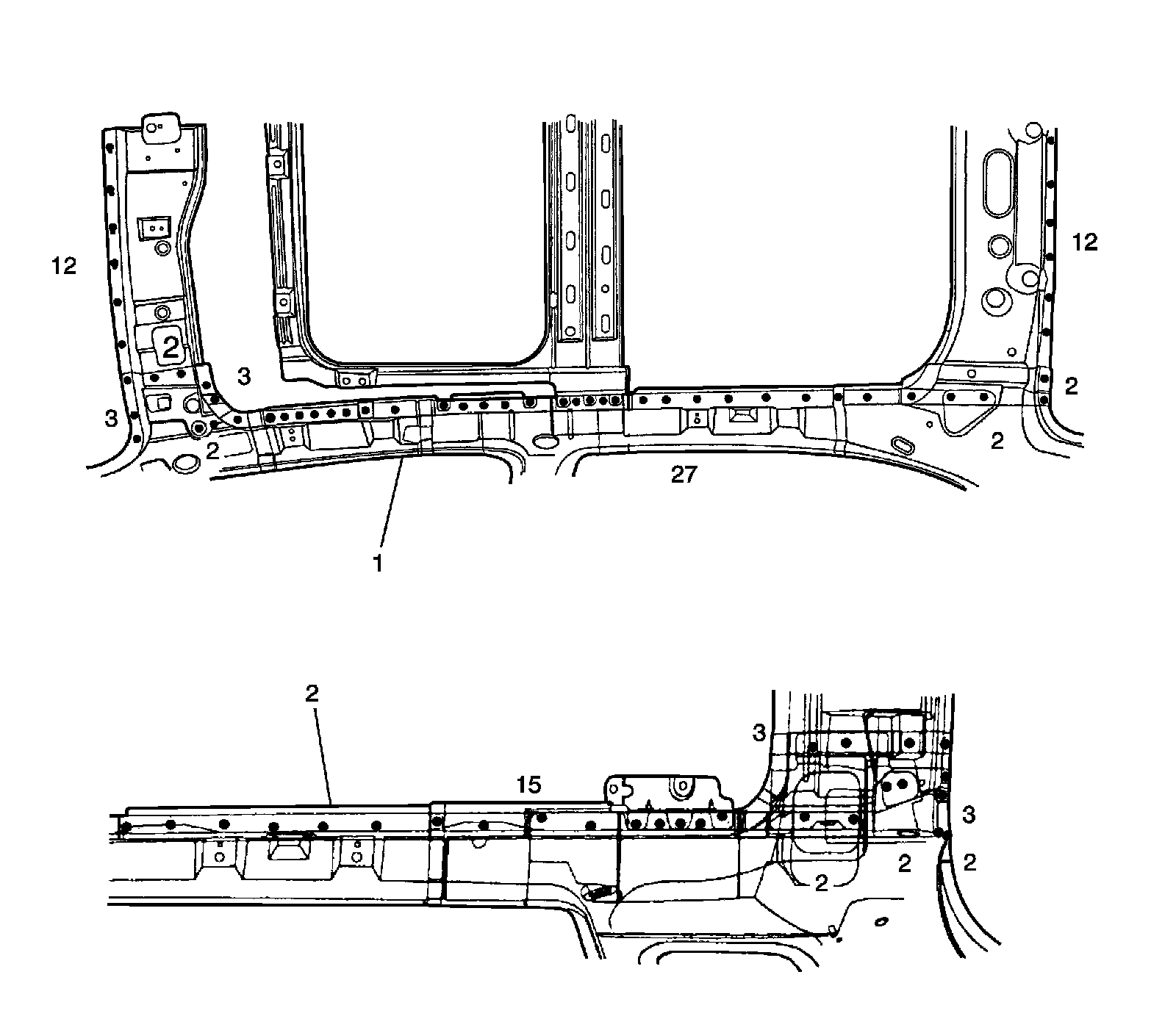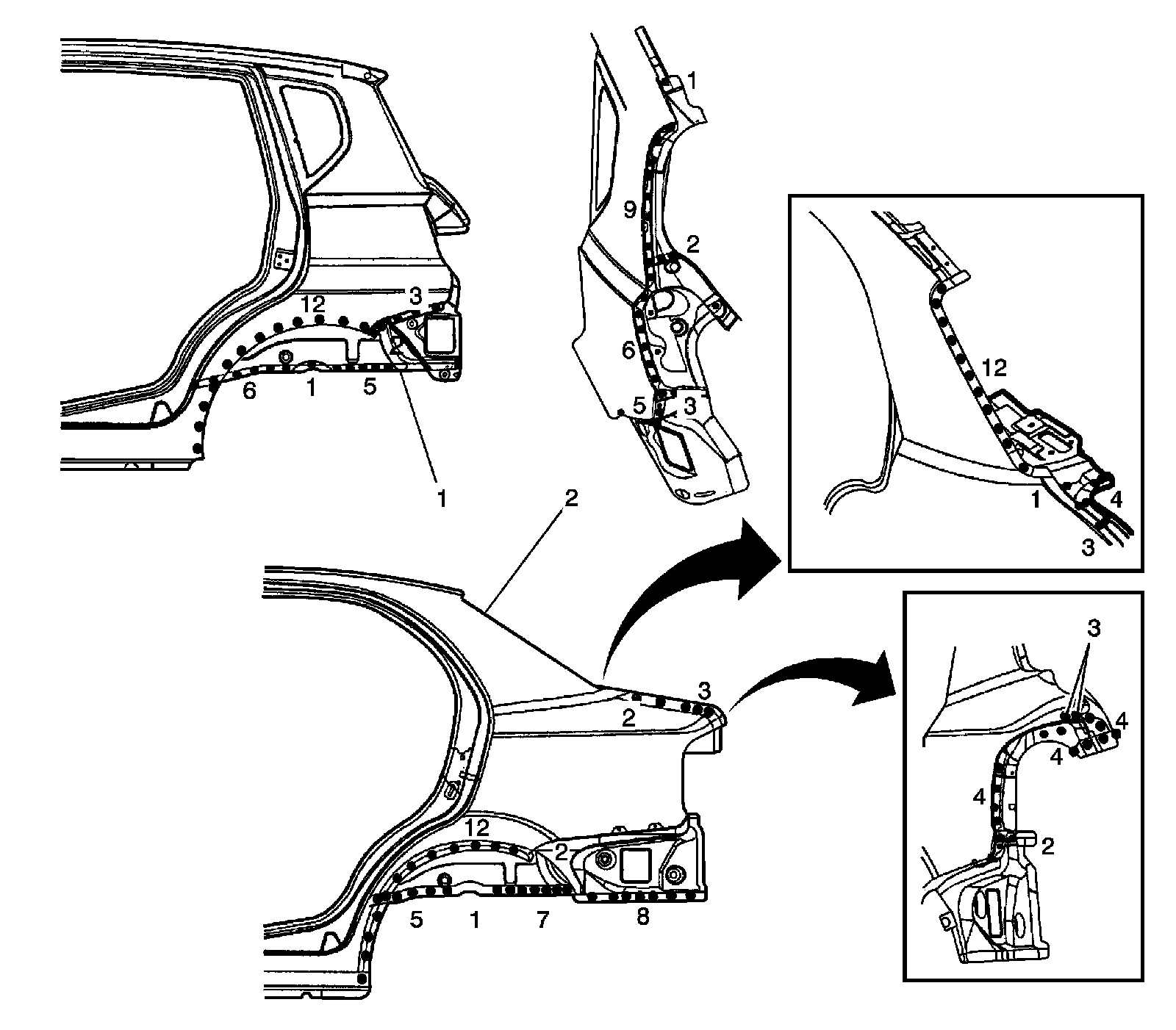 Important: The number of spot welds needed in each location is shown in illustration.