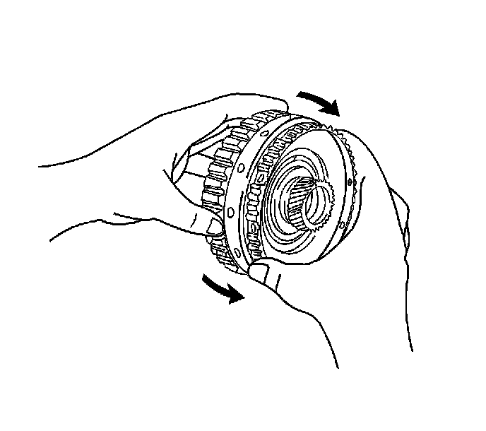 2. Hold the rear planetary sun gear and turn the one-way clutch. The one-way clutch should turn freely clockwise and should lock counterclockwise.