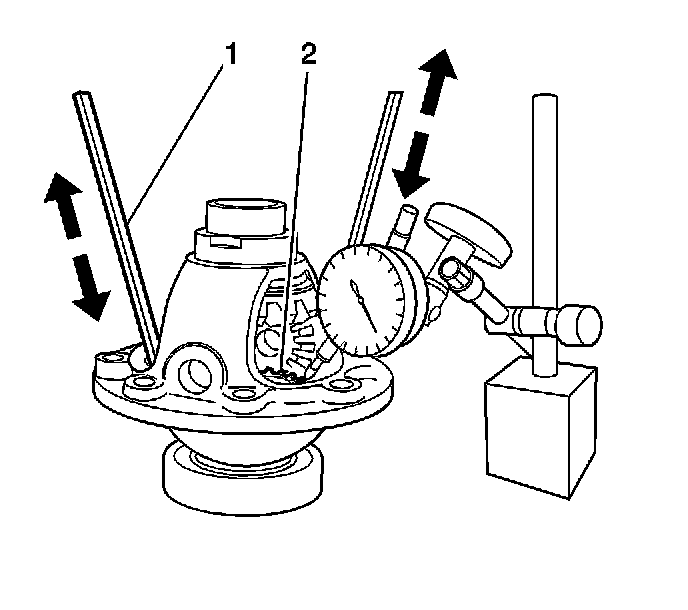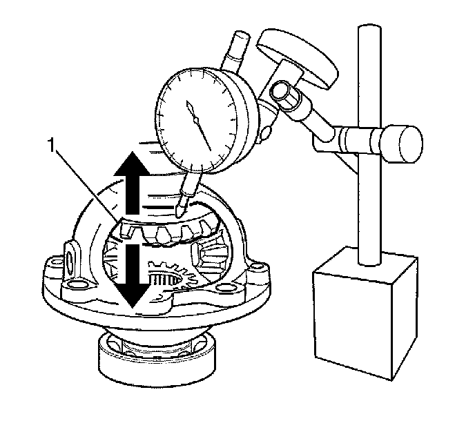 1. Measure the axle direction play (1) of side gear and replace a side gear washer if it exceeds limit. Refer to Side Gear Axle Direction Play Table in Manual Transmission Specifications.