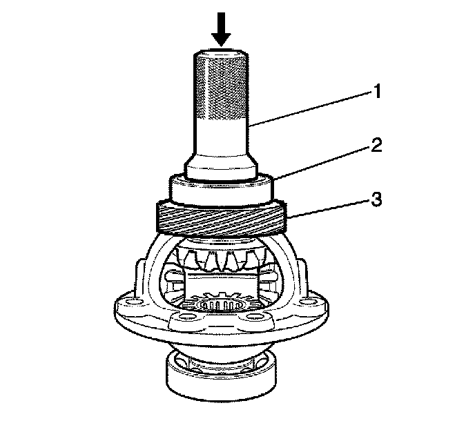 1. Insert the differential left side bearing (2).