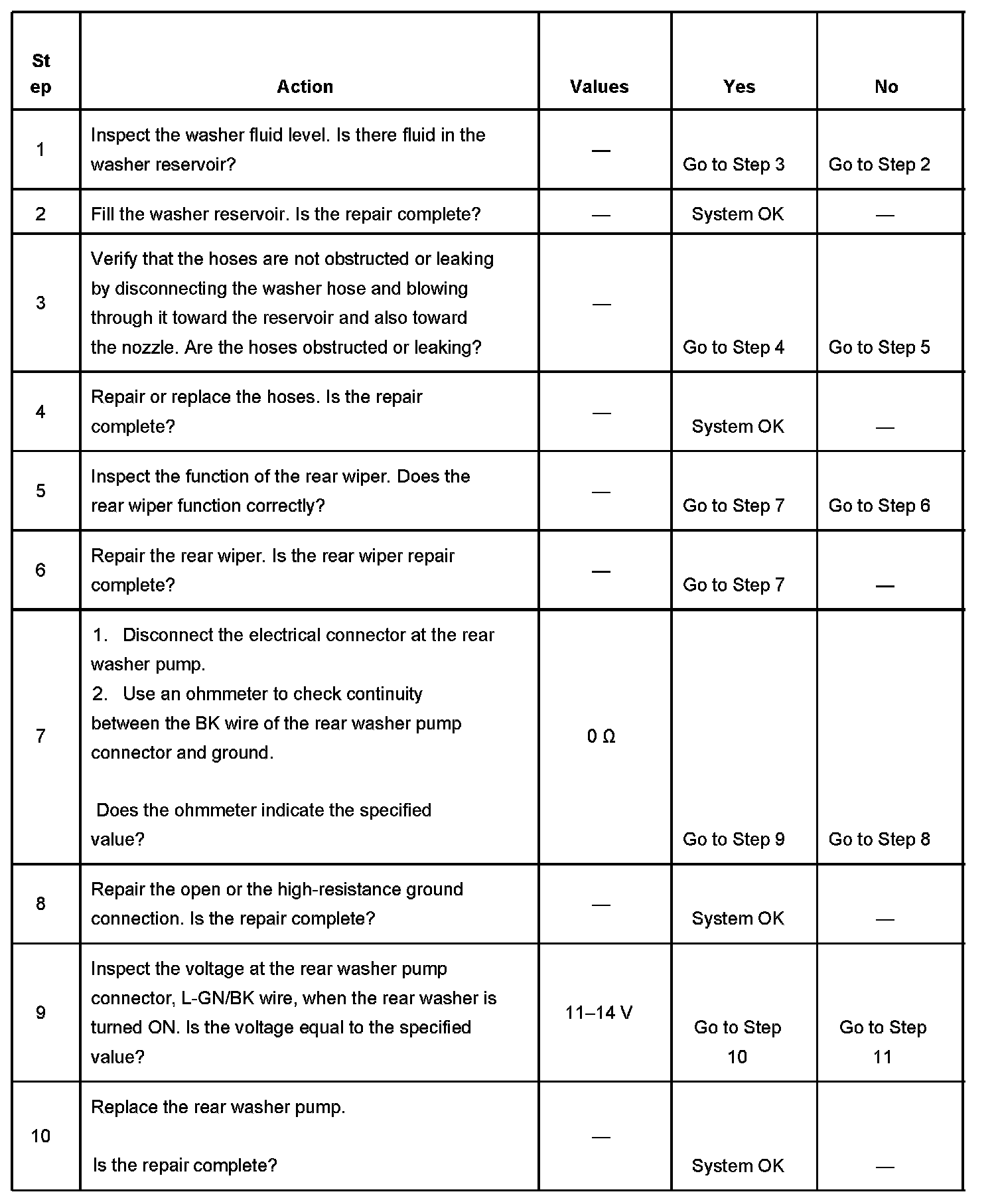 Washer Inoperative - Rear