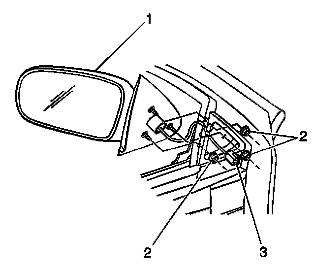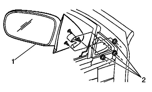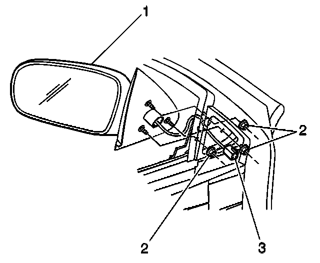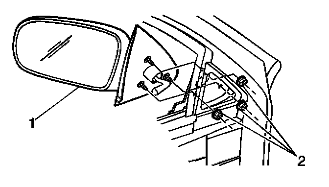 Tighten the rear door rear view mirror nuts (2) to 6 N.m (53 lb in).