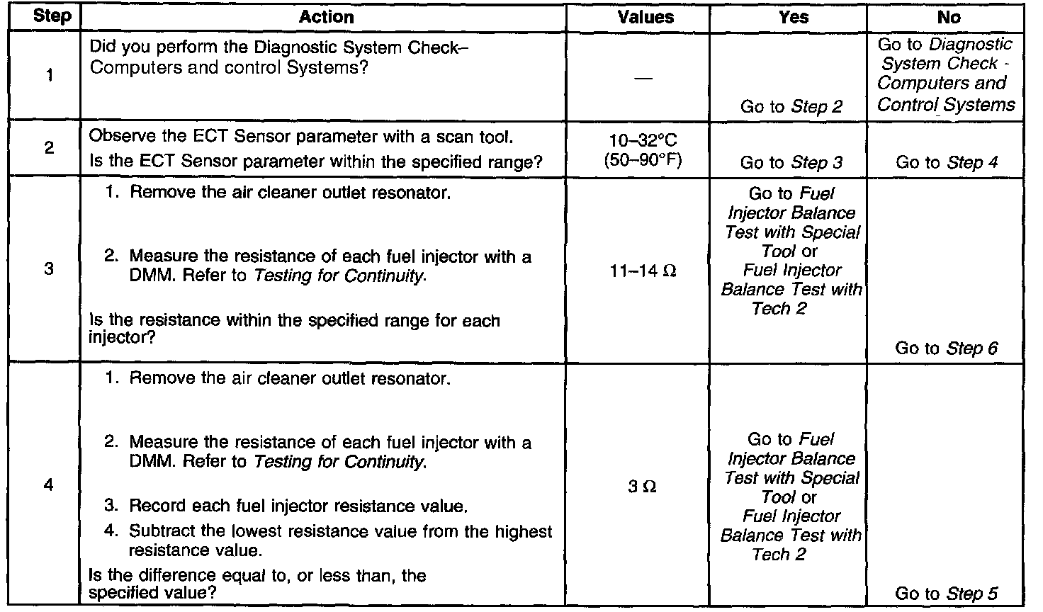 - Perform the fuel injector coil test within the conditions of the customer's concern. A fuel injector condition may only be apparent at a certain temperature, or under certain conditions.