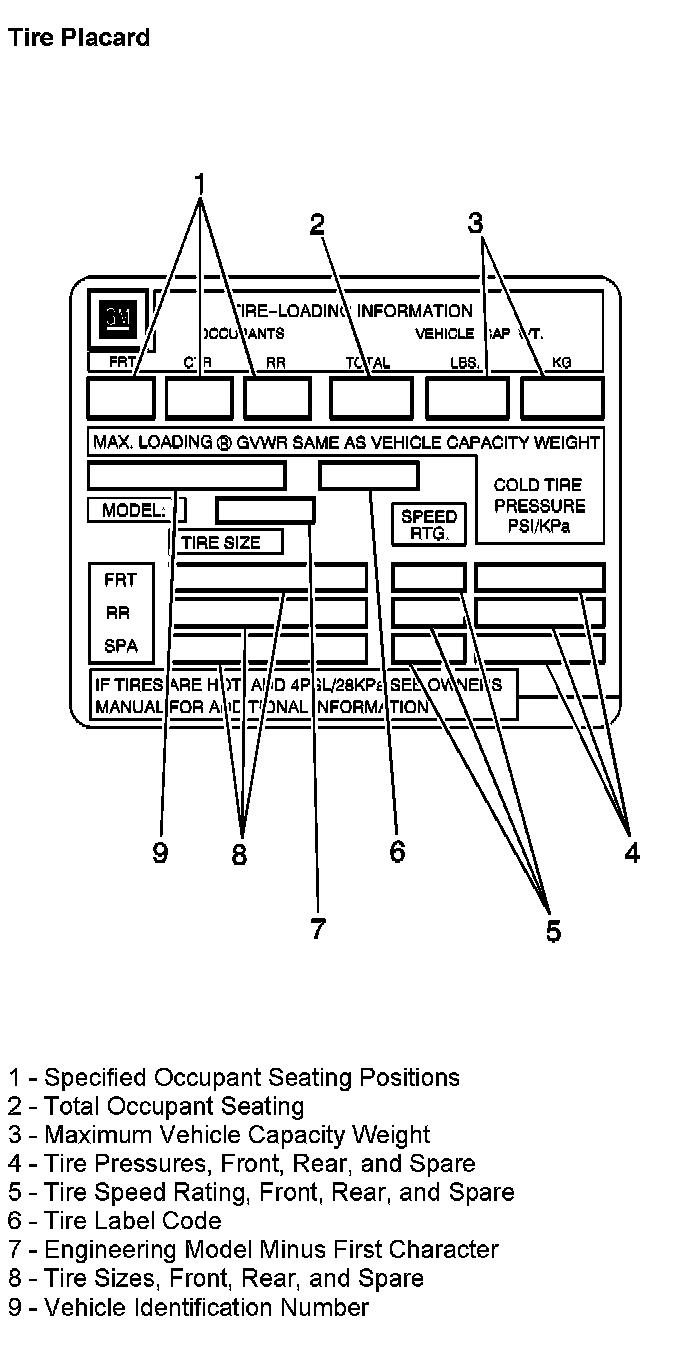 TIRE PLACARDTire Placard: