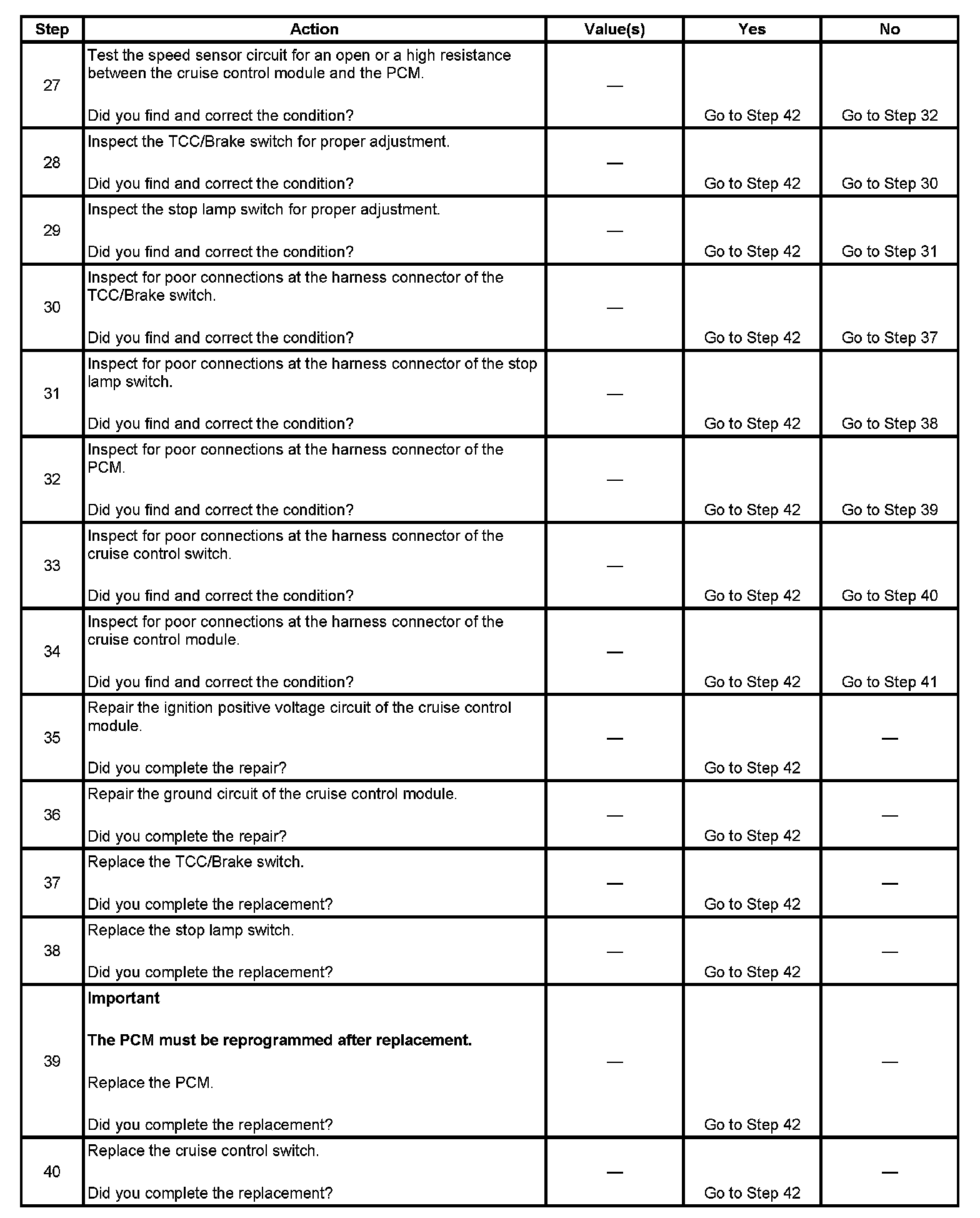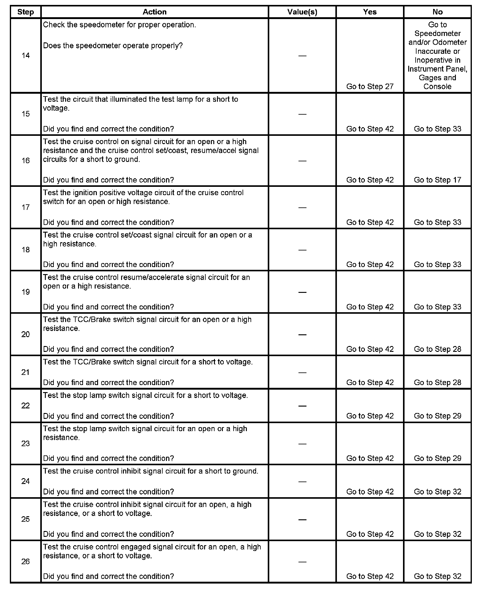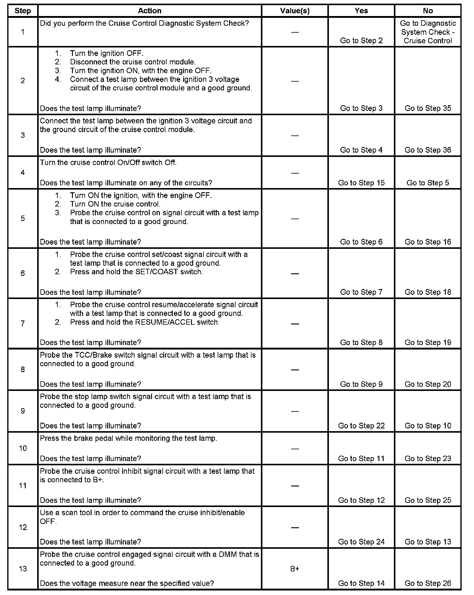 CRUISE CONTROL INOPERATIVE/MALFUNCTIONINGDIAGNOSTIC AIDS