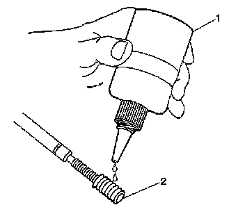 Lubricate the threads of the installer tool (2) with the driver oil (1).