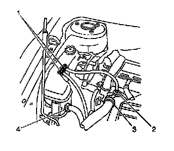 11. Disconnect the surge tank to radiator outlet hose (3).