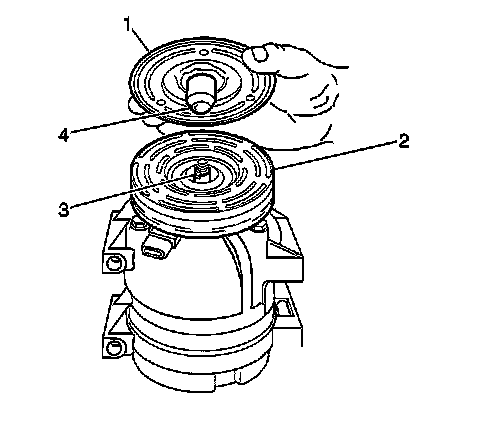 3. Align the shaft key in the clutch plate (4) with the keyway in the compressor shaft (3) and install the clutch plate.