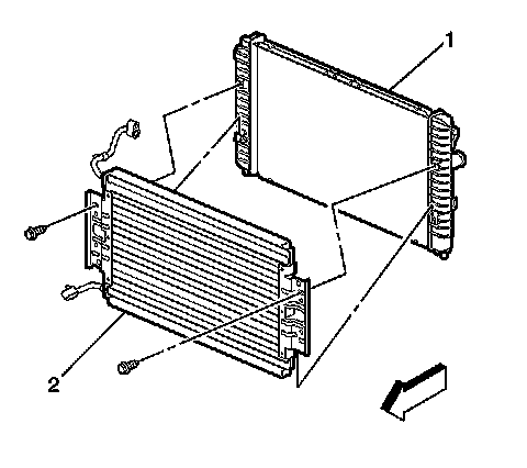 6. Remove the condenser (2) from the radiator (1).