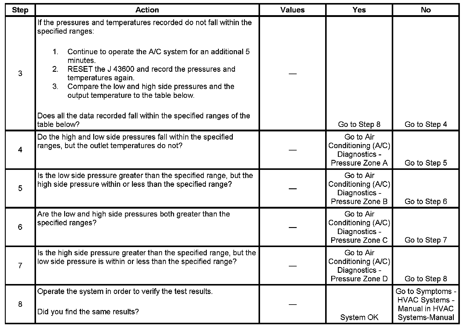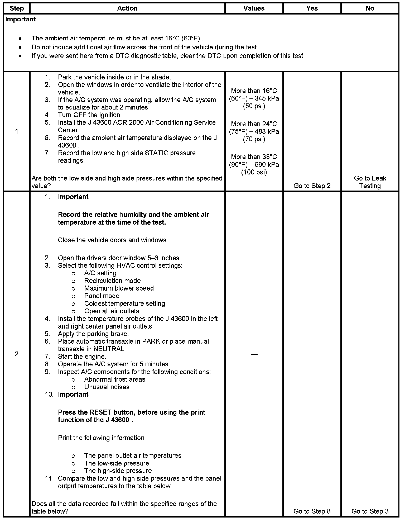 1. This step determines if the A/C system has at least the minimum refrigerant charge required to operate the system without damage.
