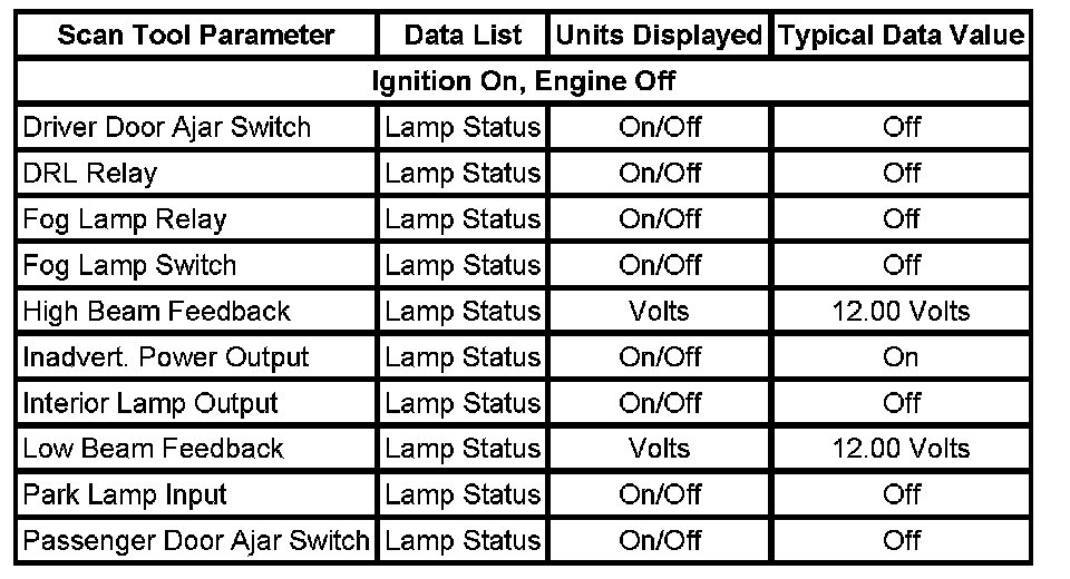Scan Tool Data List:
