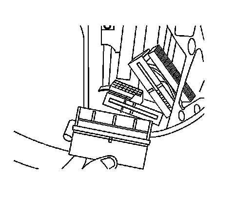 2. Through the opening in the I/P storage compartment connect the inboard junction block electrical connectors to the I/P fuse block.