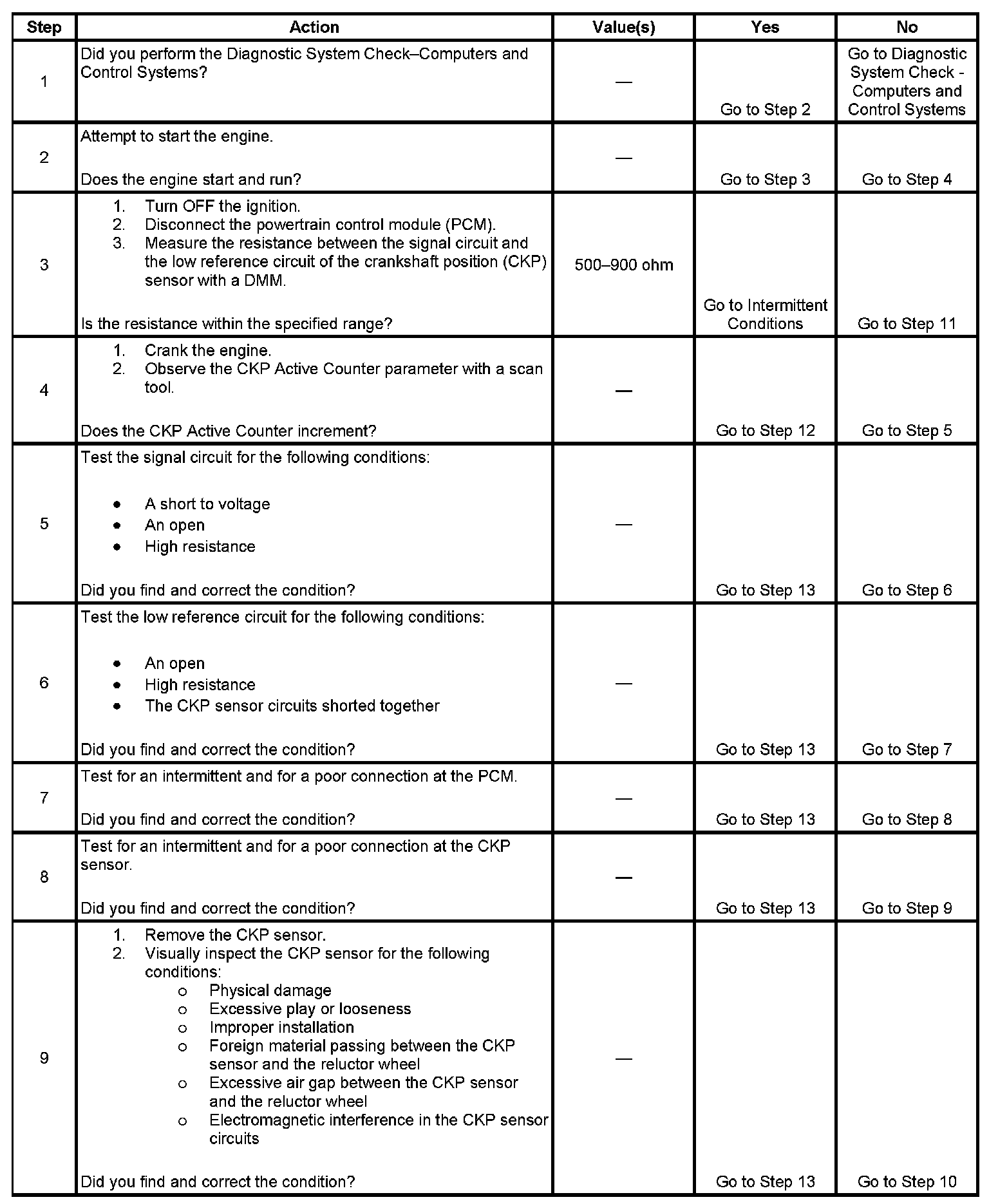 - The CKP sensor signal