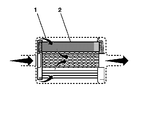The fuel filter is located on the fuel feed pipe, between the fuel pump and the fuel injectors. The paper filter element (2) traps particles in the fuel that may damage the fuel injection system. The filter housing (1) is made to withstand maximum fuel system pressure, exposure to fuel additives, and changes in temperature.