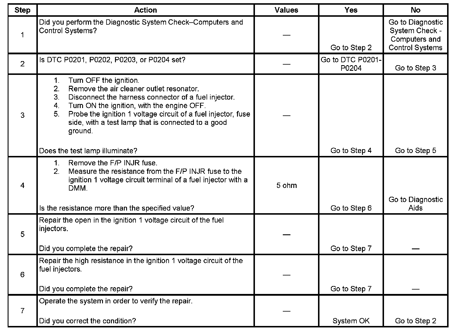 Fuel Injector Circuit Diagnosis
