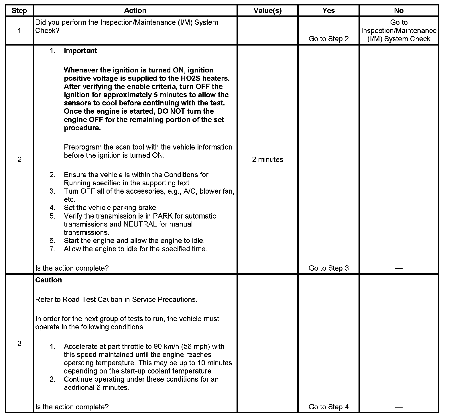 3. This step is to run the EVAP, AIR and the Oxygen Sensor Tests. The EVAP Test begins once the engine coolant reaches a calibrated temperature. The AIR Test, if equipped, begins shortly after Closed Loop and the indicated speed is achieved. The Oxygen Sensor Tests begin once the engine is at operating temperature, in Closed Loop fuel control, and a calibrated amount of time has elapsed.