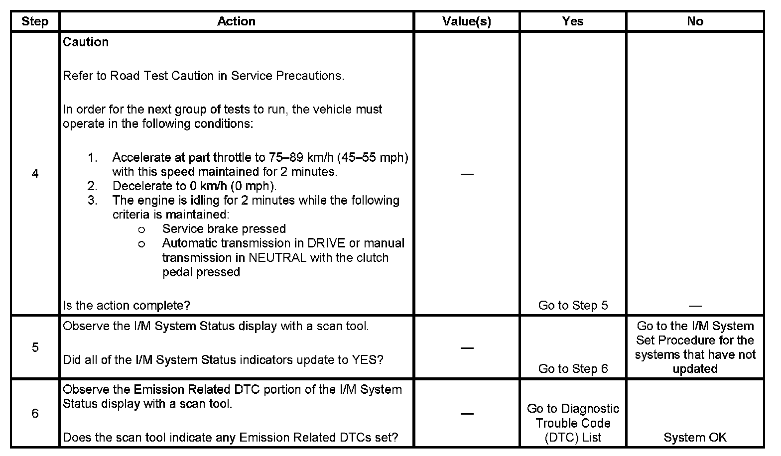 6. The I/M System Status only reports on whether or not a diagnostic has run, not what the outcome of the test was. If any emission related DTC sets after the tests are complete, the DTC will require diagnosis.