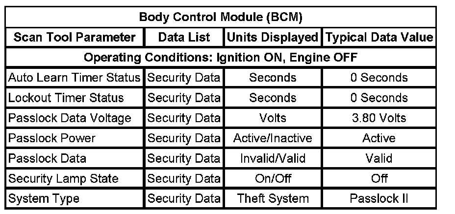 Powertrain Control Module (PCM) Scan Tool Data List: