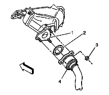 5. Remove the exhaust flex decoupler (4) from the exhaust manifold (1).