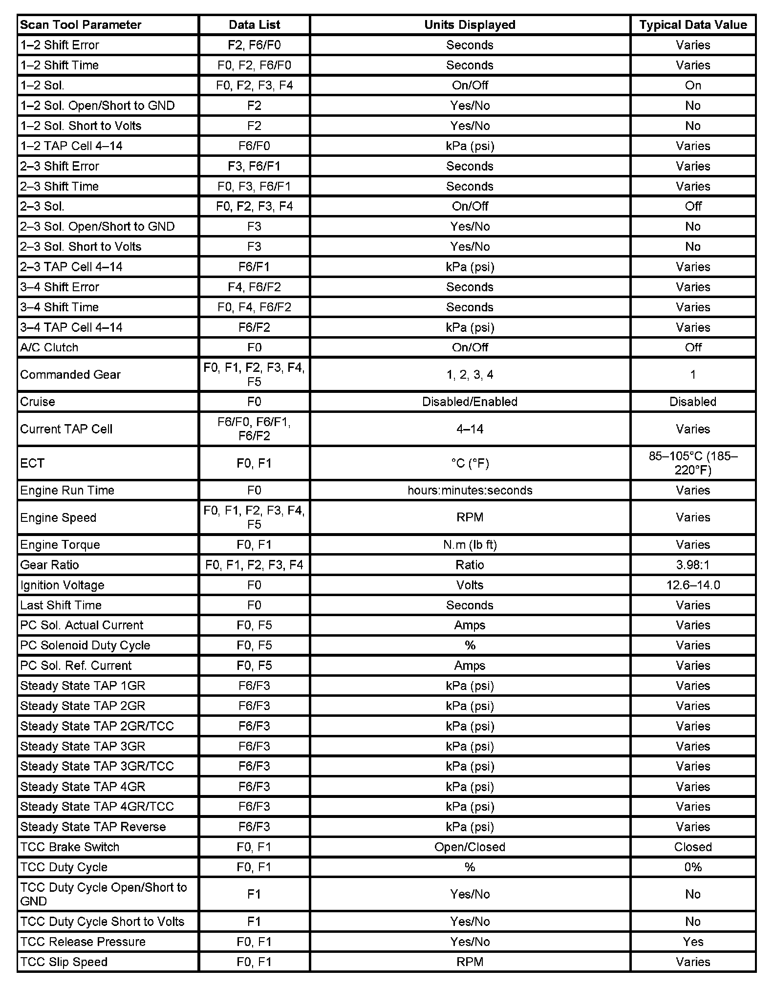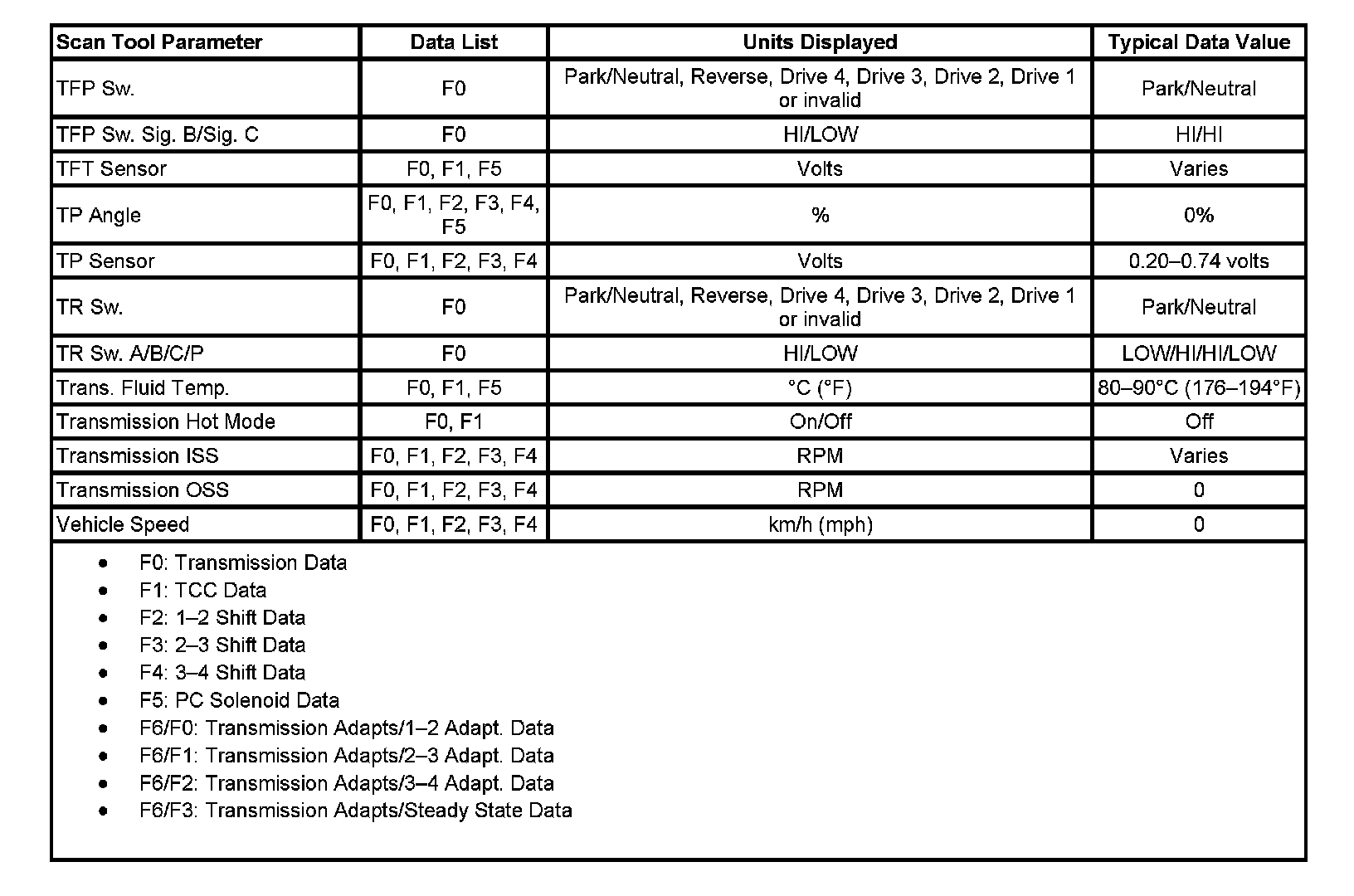 Transmission Scan Tool Data ListUse the scan tool data values under the following conditions: