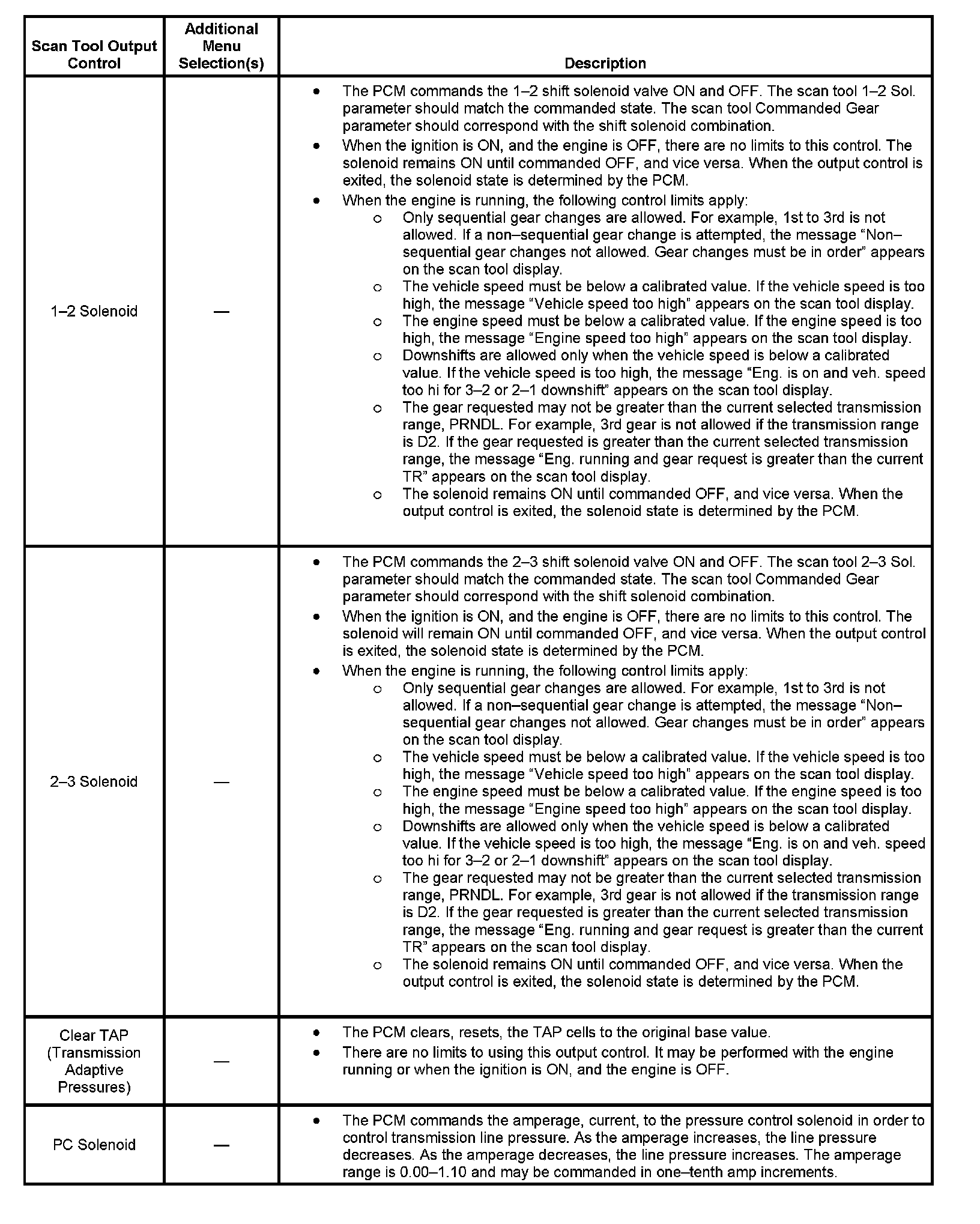 Scan Tool Output Controls