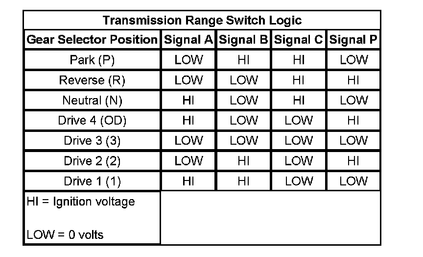 Transmission Range Switch Logic: