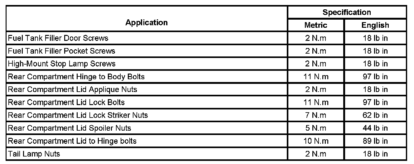 Fastener Tightening Specifications
