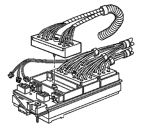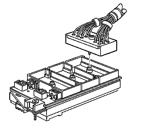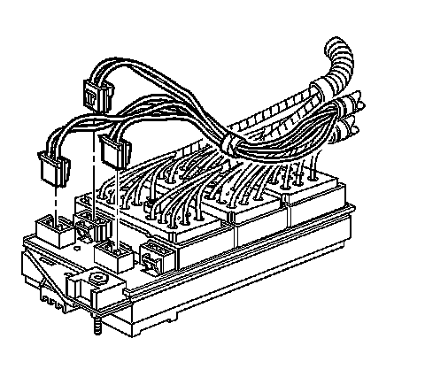 5. Install the bolts retaining the engine, IP, and forward lamp wiring harness connectors to the junction block.