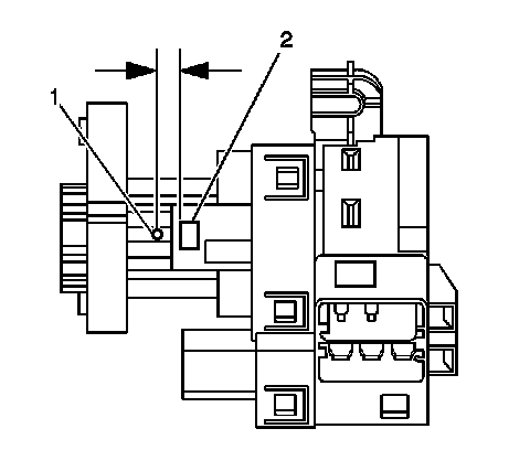 2. Locate the surface for the ignition switch lock cylinder release button (2) on the plastic ignition switch housing. On the key entry side of the switch housing center punch a location on the rib (1) approximately 3/8 of an inch from the cylinder release button (2).